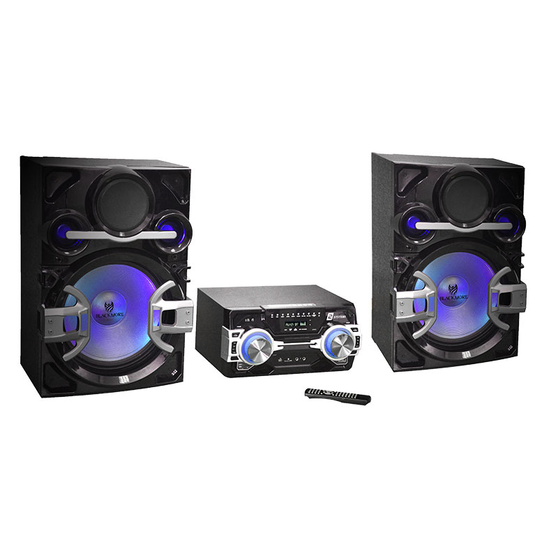 The BHS-1 Home Theatre Audio/Video SystemLights, Video, Sound; this system has it all. The BHS-1 provides enough entertainment to keep the party going all night long. Complete with a front loading CD/DVD player, AM/FM radio, and other inputs, the BHS-1 Home theatre system will create a true experience.AUX (3.5mm) input and microphone inputs, it is also built with a USB flash drive reader. With 5000 watts of pure power, users can belt out songs utilizing the karaoke function