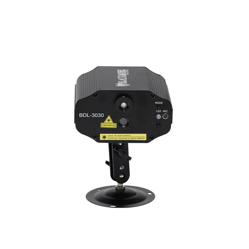 The BDL-3030 is a multicolored laser light display emitter with over 30 display patterns, Sound Control via a built in microphone, adjustable laser colors and full function remote control. The unit has 3 operating styles, Autorun, Sound Active, and Autorun and Sound active auto switching. It includes a highly adjustable mounting bracket and can cover an area of over 30’ with brilliant lights and patterns.