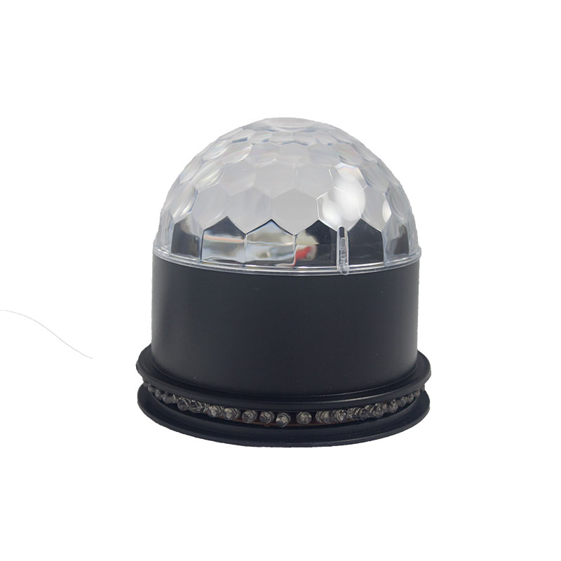 The BDL-3021 is a multifaceted dome shaped LED light displayemitter that produces four different, multicolored light displays that can light up over 15’ of ceiling and dance floor. It has a built in microphone for sound activation as well as a multi LED trim ring with a separate lighting pattern.