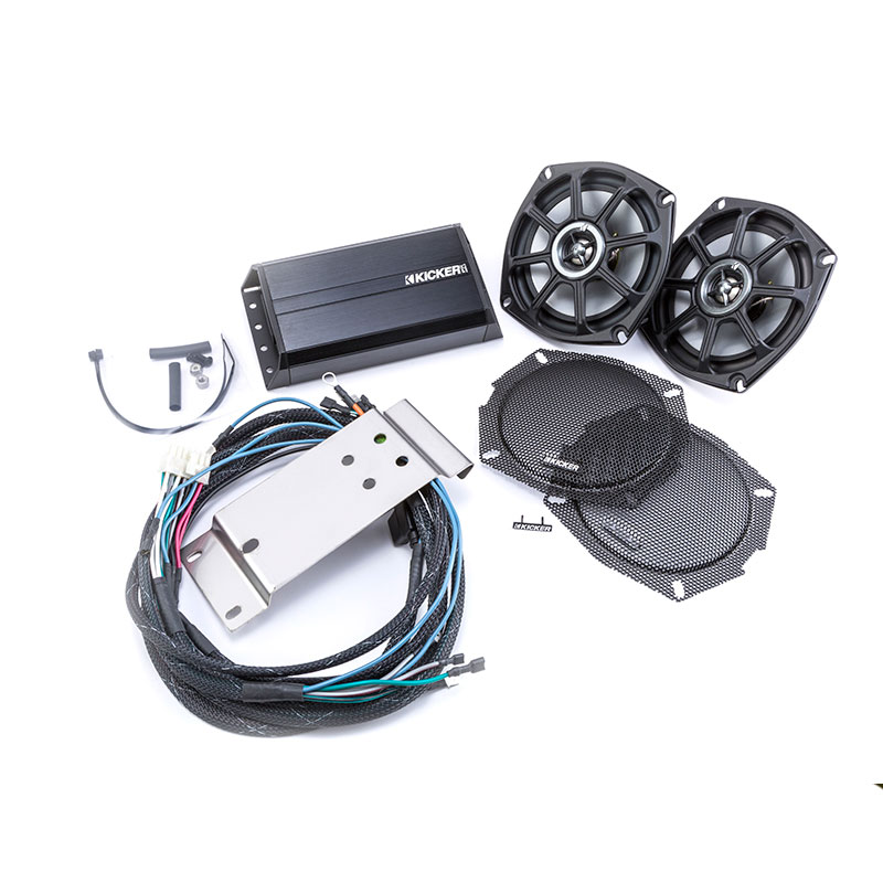 Vehicle-Specific Solutions (VSS™) have long been the answer for those who expect superior musical performance from a single KICKER upgrade kit. Now KICKER works with motorcycle authority Klock Werks® to provide weather-proof coaxials speakers and low-power-draw amps for a bike, designed to be heard over wind and road noise and with the convenience of a seamless, plug-and-play wiring harness.