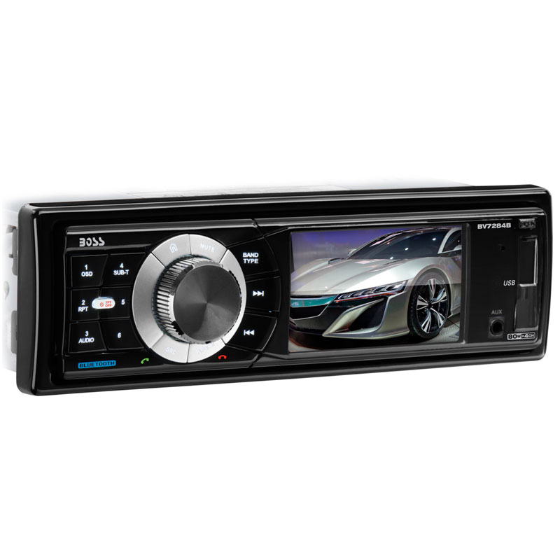 Shift your music into high gear with the BOSS Audio BV7284B Single-DIN Mech-less Digital Media Receiver with a 3.2" Monitor. Turn on the AM/FM radio, hook your smartphone or MP3 Player up through the auxiliary input or plug into the SD and USB ports for even more music. Bluetooth technology lets you stream music and make calls hands-free. A wireless remote puts control at your fingertips. The front panel easily detaches to deter theft.