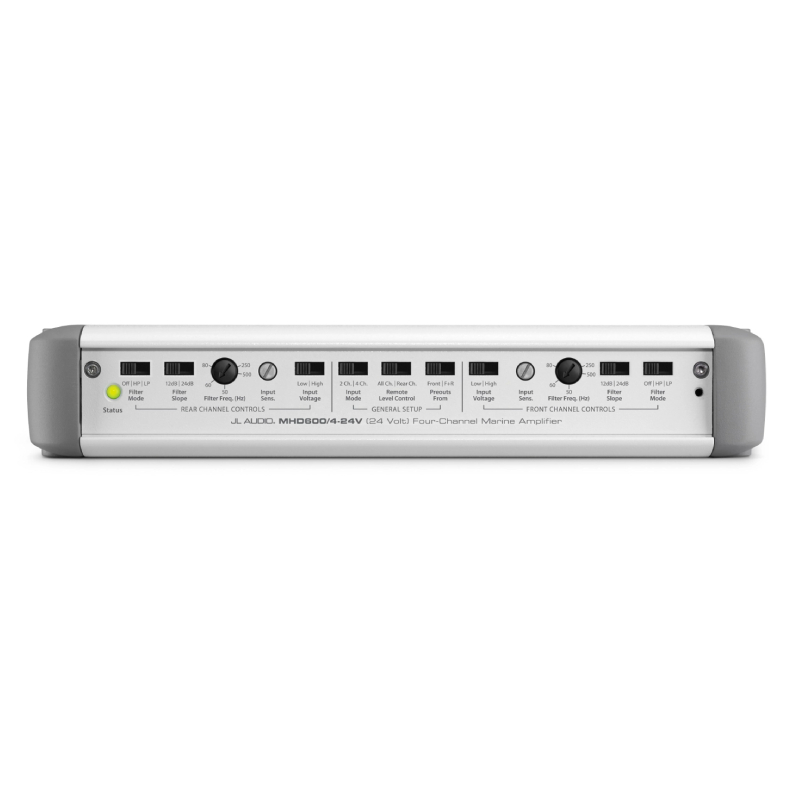 Elevate your marine audio experience with this versatile amplifier, featuring a powerful 3-channel configuration (150W x 2 for satellites, 300W x 1 for subwoofer). Built with durable white and gray powder-coat finishes, a gasketed cover for control protection, and corrosion-resistant stainless steel hardware, it’s designed to withstand harsh marine conditions. Exclusively compatible with 24V negative-ground electrical systems, this amplifier delivers reliable performance on the water.