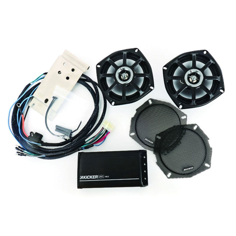 The FIT KIT includes speakers that fit into factory openings with supplied mounting rings/spacers. The small-footprint Amp mounts inside your fairing and/or tour pack using the provided custom-fit, stainless-steel bracket. The custom wiring harness offers 100% Plug-N-Play installation, and the FIT KIT also includes all necessary hardware and instructions. There is no need to cut wiring or chop up your fairing or tour pack. Everything you need is included!