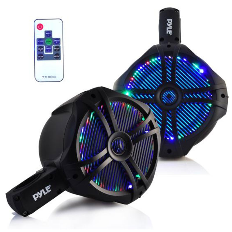 Pyle PLMRWB85LEB - Hydra Series 8'' 260W Peak Power Handling, Dual Marine Wakeboard Water Resistant Speakers with Built-in Programmable Multi-Color LED Lights (Black), Remote Control included
