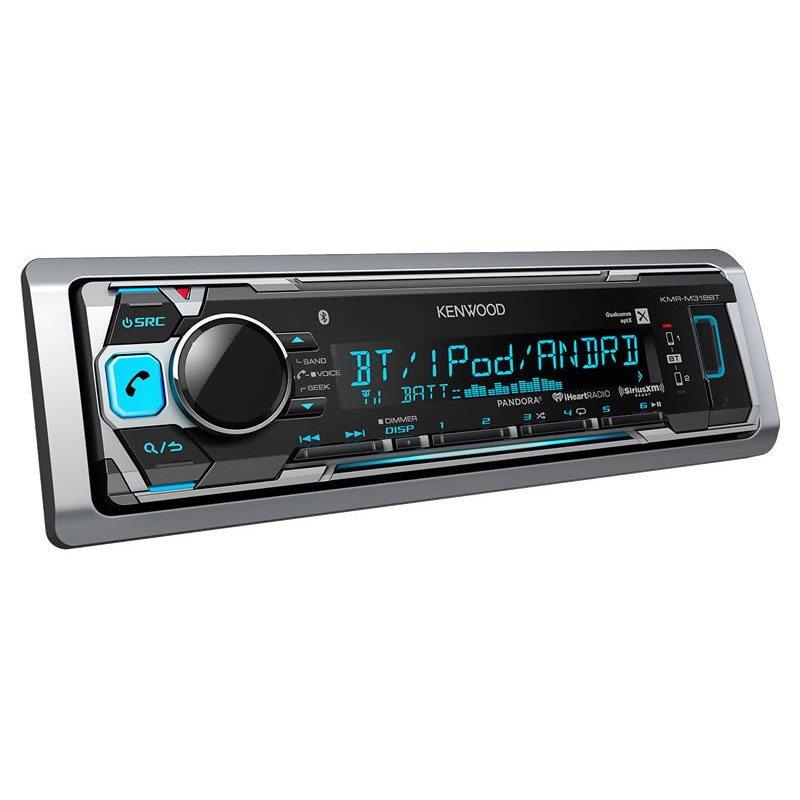 Single DIN in-dash marine receiver with Bluetooth / Pandora / SiriusXM / iHeartRadio / Dual Phone Connection / Music Mix / Remote App / 13 Band EQ & DTA / Wireless Music Browsing / Front USB & Aux / Conformal Coating / Android Music Playback / Android Rapid Charge / Variable Color Illumination / Multi Language / Qualcomm aptX