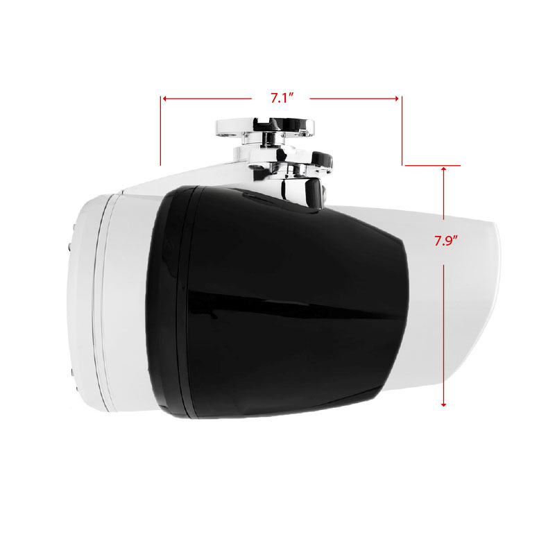 The speaker features a 6.5" woofer and 1" bridge mounted tweeter and is protected by a stainless steel grille. Both speaker and high density poly-ethylene enclosure are treated with UV inhibitors and conform to UV and water industry standards. An optional cast aluminum C-Clamp is available with near 100% rotation for unlimited flexibility.