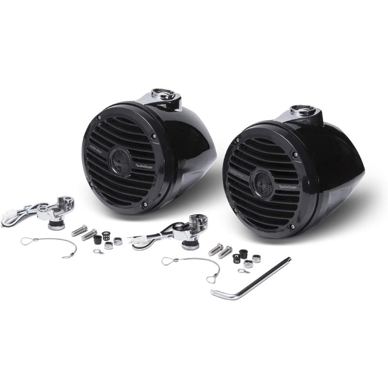Designed specifically for marine use, Rockford Fosgate's Punch Series RM1652W-MB wakeboard tower speakers give you strong performance in a package that's ideal for smaller ski boats.These compact speakers feature 6-1/2" woofers and aluminum dome tweeters that together handle up to 75 watts RMS.