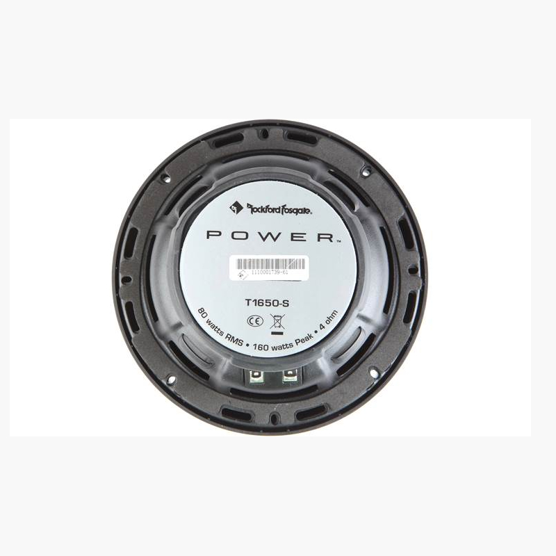 Rockford Fosgate designed the Power T1650-S component speaker system for people who won't put up with inferior sound in their cars. Each 6-1/2" woofer features a responsive carbon fiber/polypropylene cone and Santoprene rubber surround that'll stand up to hours of high-volume jams. The separate 1" dome tweeter provides clear, extended highs that can hold their own when the bass gets heavy. The included external crossover network sports selectable tweeter levels and on/off axis switching, allowing you to sculpt the high frequencies to your car's interior.