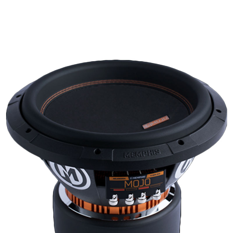 MOJO subwoofers are the biggest and the baddest subwoofer in the Memphis line. The MOJO6 was re-engineered to handle massive amounts of power and produce excessive amounts of bass. MOJO6 subwoofers are built to perform at competition levels. That requires a lot of attention to detail to achieve a high performance, yet durable subwoofer. Their dished fiberglass reinforced cone provides amazing rigidity and the double stitched surround and reinforced spider withstand the massive impact that 2200w of earthshaking Memphis power provides.