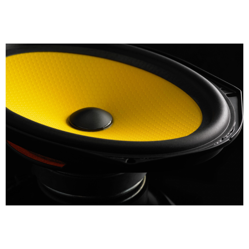 This 3-way component speaker system includes 2 woofers and 2 separate tweeters, delivering superior sound staging and a balanced audio experience. The 6"x9" mineral-filled polypropylene woofers with rubber surrounds produce deep, punchy lows and smooth midrange, while 1" aluminum edge-driven tweeters provide clear, detailed highs with minimal distortion. Inline high-pass filters protect the tweeters and ensure a seamless frequency transition from woofer to tweeter for consistently balanced sound.