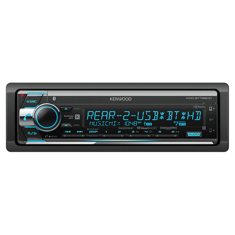 In-Dash CD Receiver with Bluetooth / Variable Color LEDs / Music Mix / Dual Phone Connection / Remote App / Wireless Music Browsing / Rear Dual USB / Android Music Playback / Android Rapid Charge / 13 Band EQ & DTA / Drive EQ / SiriusXM / iHeartRadio / Pandora / HD Radio / NFC / AAC, aptX Compatible