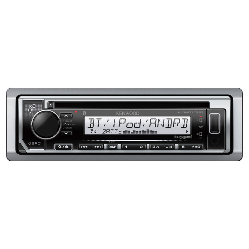 Perfect for your marine vehicle, the KMR-D372BT is packed with 200 watts of power with anti theft faceplate for protection. It also features variable bright color LED display for ease of use even in the dark along with a large volume knob to lessen distraction and promote safety while sailing. The KMR-D372BT has bluetooth compatibility with most smartphone today for streaming music and handsfree calling as well as SiriusXM capability if you have subscription for satellite radio.