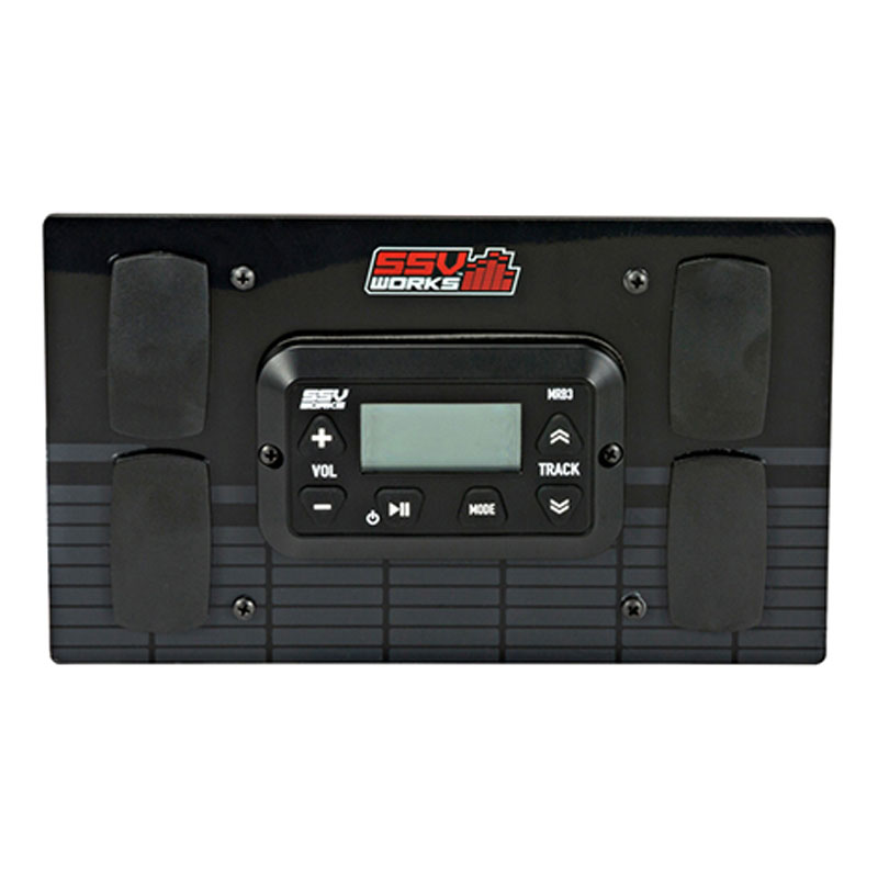 KICKER and SSV Works deliver great tunes on the trail. This complete three-speaker system is custom-made for your RZR, right down to the wiring. To get tunes to your system, an SSV Works receiver is included, delivering AM/FM and Bluetooth connectivity to two KICKER PX-Series powersports amplifiers. These weatherproof amps give you 800 watts worth of juice for plenty of volume on the trail.