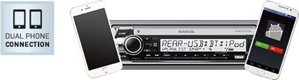 Allows two phones to be connected for hands-free operation at any time. Easily switch between both phones with the touch of a button. Answering, calling or searching your phonebook on your phone is made simple through an intuitive GUI.