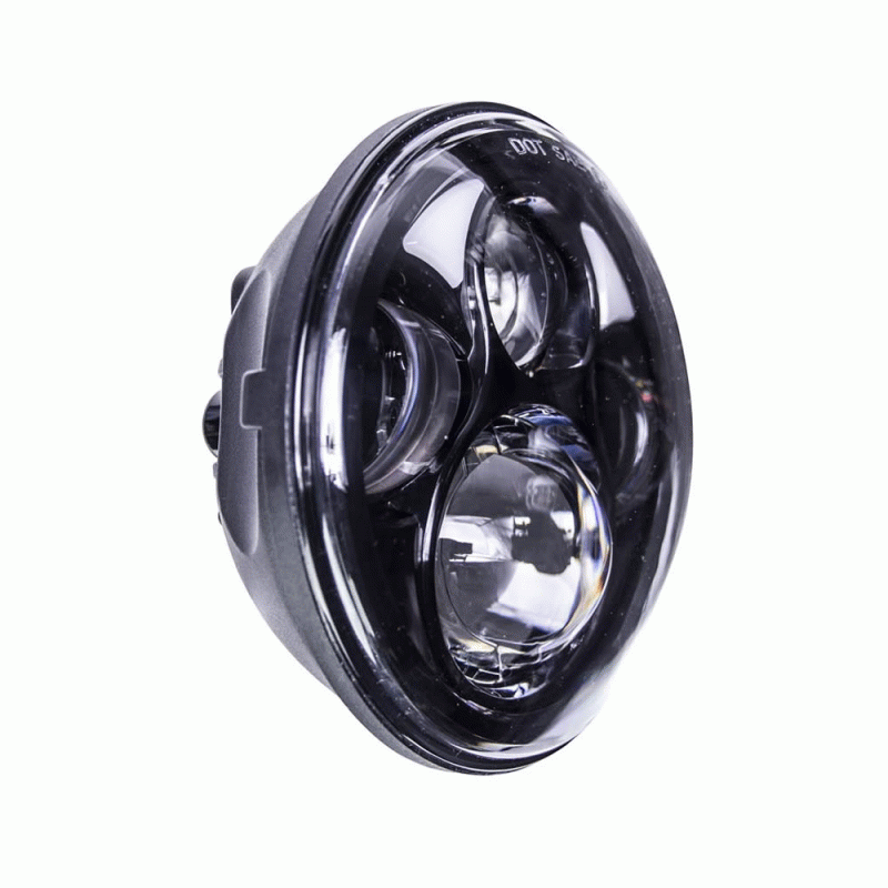 (8) 5 watt LEDs, White partial angel eye halo connects to running lights, 1350LM low beam – draws 1.6a at 13.8v, 1770LM high beam – draws 2.1a at 13.8v, LED color- 6500K Polycarbonate lens cover is virtually unbreakable, H4 connector, and Designed for use with most motorcycles using a 5.6" headlight.