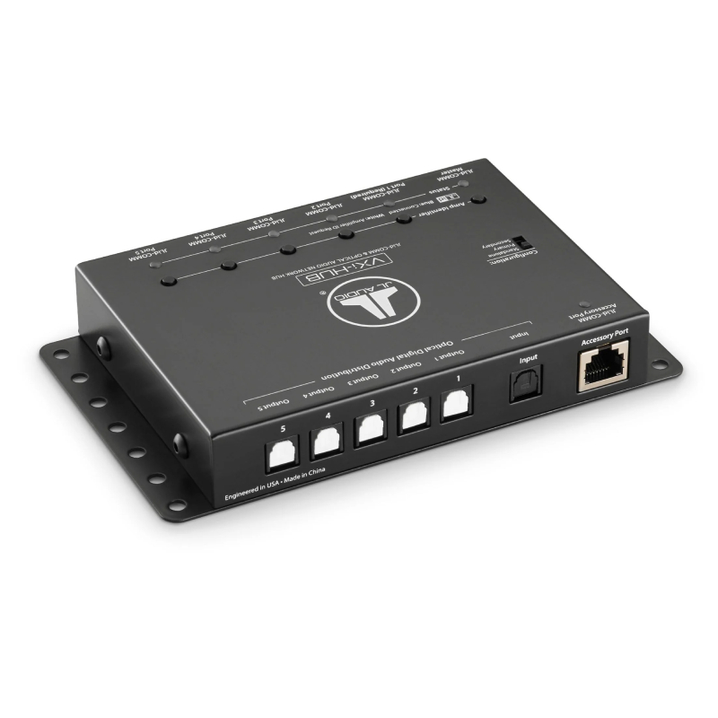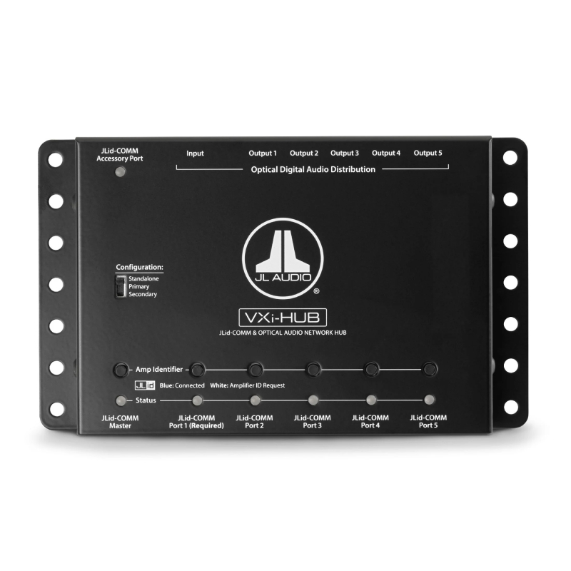 VXi-HUB handles S/PDIF signals up to 24 bits/192 kHz. For ease of connection, the VXi-HUB is powered via the JLid™ connection to VXI amplifiers and requires no separate power or turn-on wiring.
