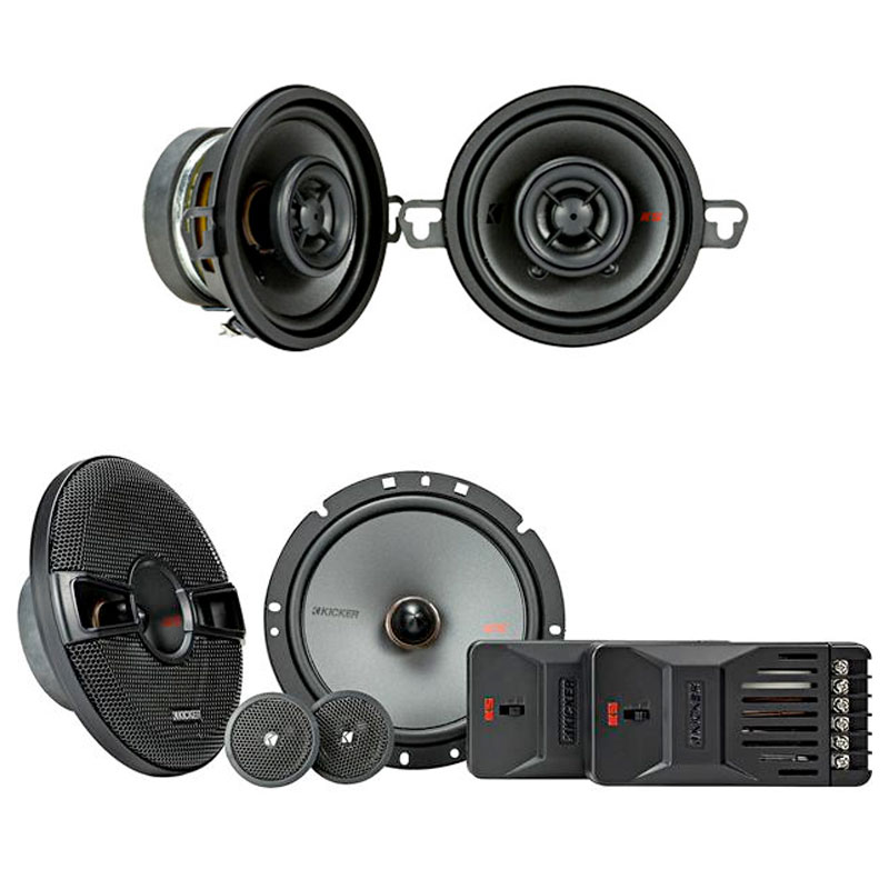 These KICKER® door speakers are available in nine different sizes, and include a minimally protruding tweeter with a large silk dome, polypropylene woofer and tough rubber surrounds. Our coaxials give you a smooth, distortion-free response that fits in nearly every ride out there - without interfering with the factory grilles.