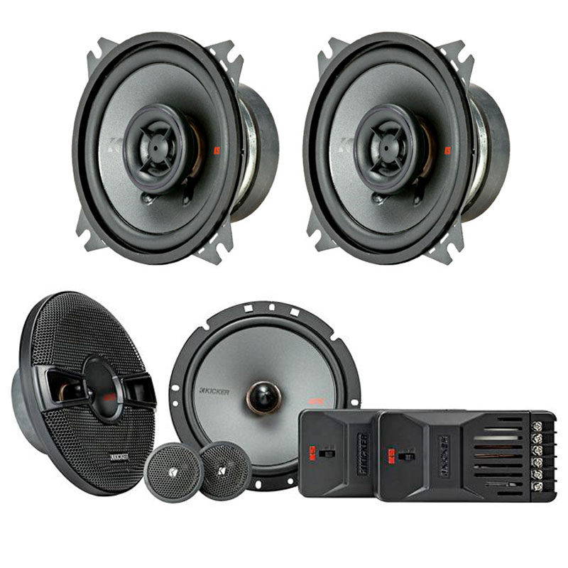 These KICKER® door speakers are available in nine different sizes, and include a minimally protruding tweeter with a large silk dome, polypropylene woofer and tough rubber surrounds. Our coaxials give you a smooth, distortion-free response that fits in nearly every ride out there - without interfering with the factory grilles.