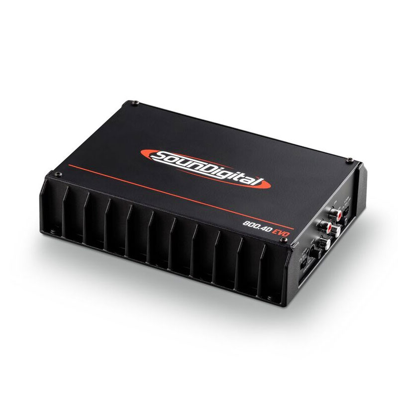 Soundigital's 800.4D EVO II, 4-channel amplifier is designed to power your subwoofer with up to 800 watts RMS, so you can experience a whole new different feel in your music. EVO line now features a linear power supply with an efficiency over 90% which lowers consumption while producing solid and longer bass sounds.