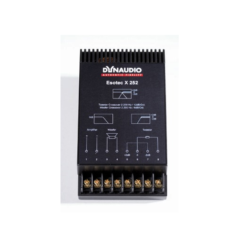 The Esotec X252 is a first order crossover with impedance correction for the woofer to create an even easier load for any amplifier and a second order filter with an integrated self-resetting protection circuit for the tweeter.
