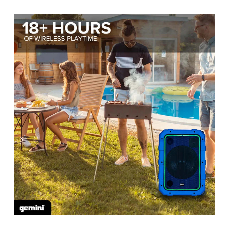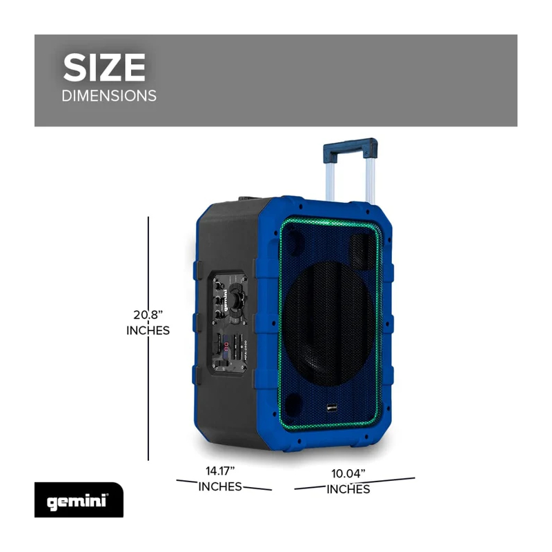 Gemini Sound MPA-2400BLU - Portable Weather Resistant Trolley Bluetooth Speaker with 240W Peak Power, 10" Woofer and 55Hz – 18KHz Frequency Response (Blue)