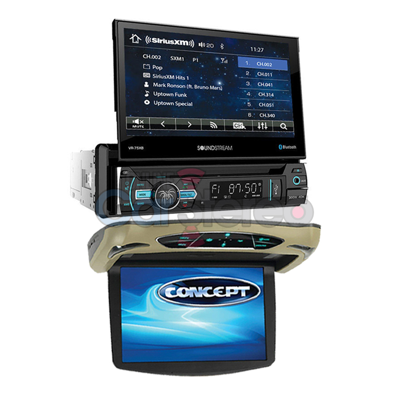 Soundstream VR-75B 7” Single DIN Touchscreen w/ DVD, CD/MP3, AM/FM Receiver + Concept CFD-135M 13.3" Flipdown Video Monitor