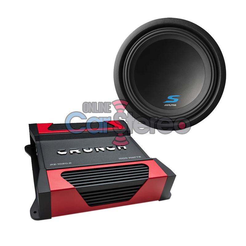 Alpine S-W12D4 12" 1800 Watts Peak Power Dual 4-Ohm Car Subwoofer + Crunch PZ-1020.2 1100W Max 2-ohm Class A/B Amplifier