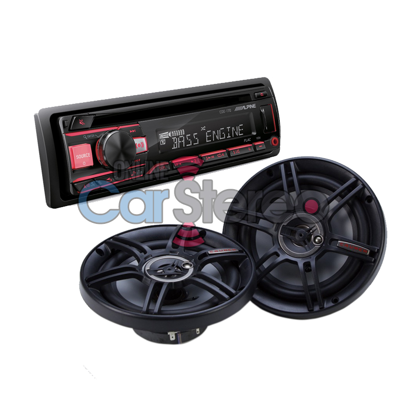 Alpine CDE-170 Single DIN In-Dash CD/AM/FM Car Receiver + Crunch CS653 6.5" 300W 3-Way Full Range Speakers