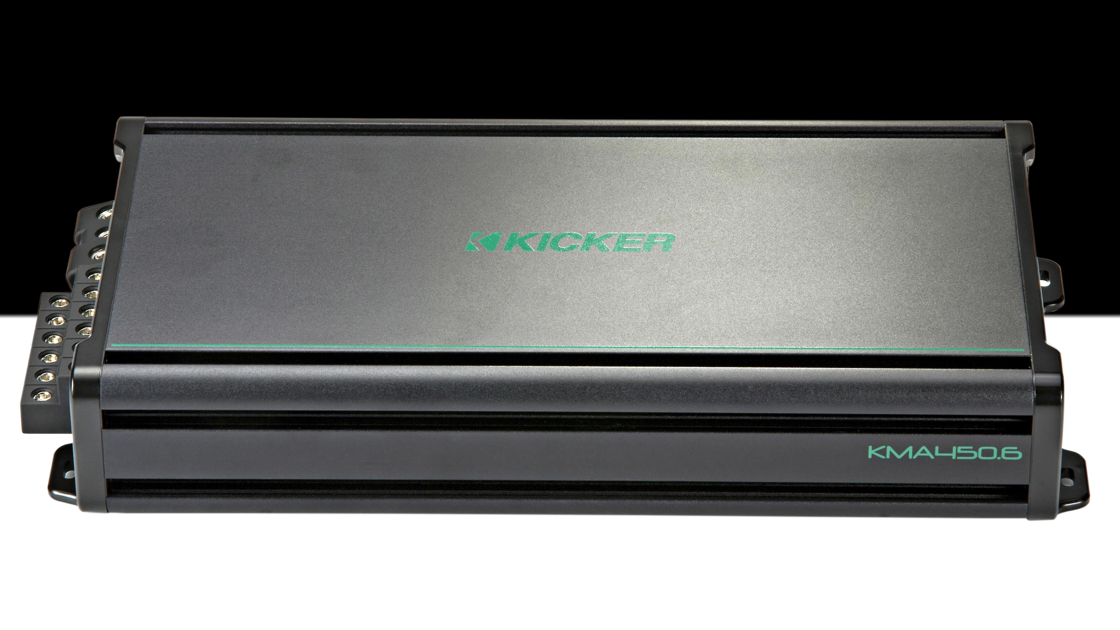 KICKER created the KMA450.6 to power up to three independent full-range zones! This six-channel, 450-watt amp provides an easy way to get the perfect volume levels on (or off) the deck, in the water, or inside the cabin. Control the volume of one zone with the receiver. Another zone is controlled with the included full-range volume knob, which can be mounted on (or under) nearly any flat surface.