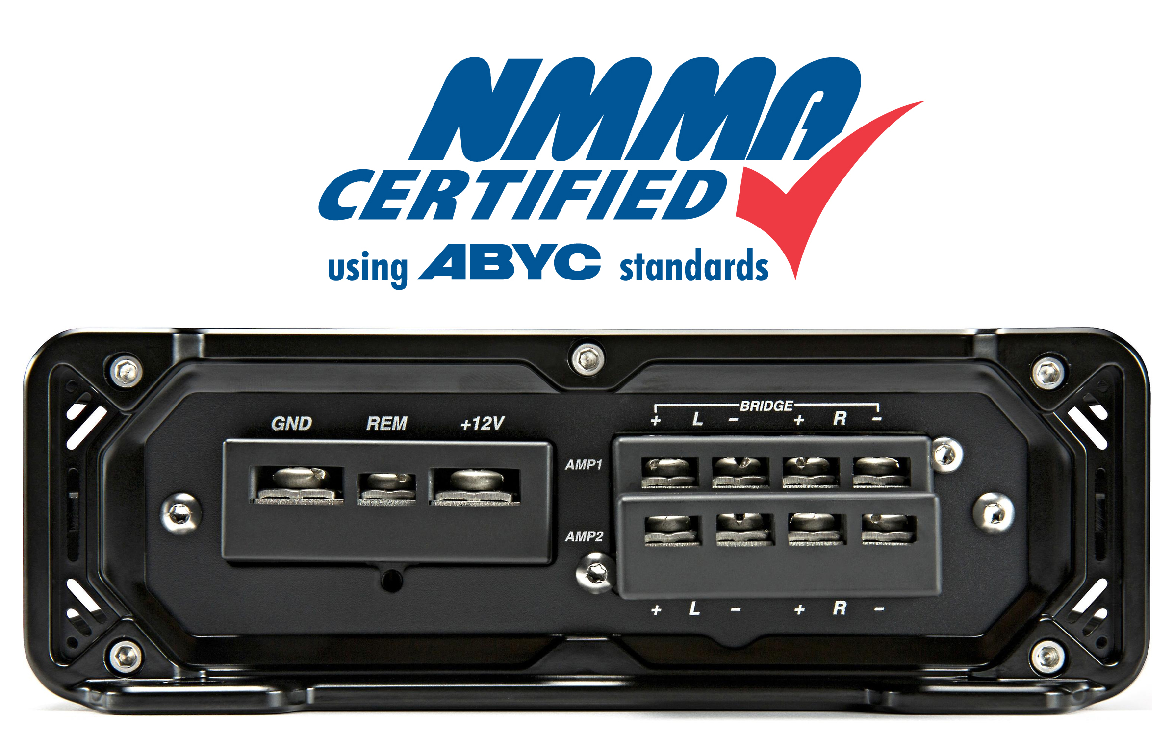 Purpose-built for your boat, every KM amp comes complete with marine-grade speaker terminals, stainless-steel screws, conformal-coated circuit boards and ABYC/NMMA-compliant power connections.