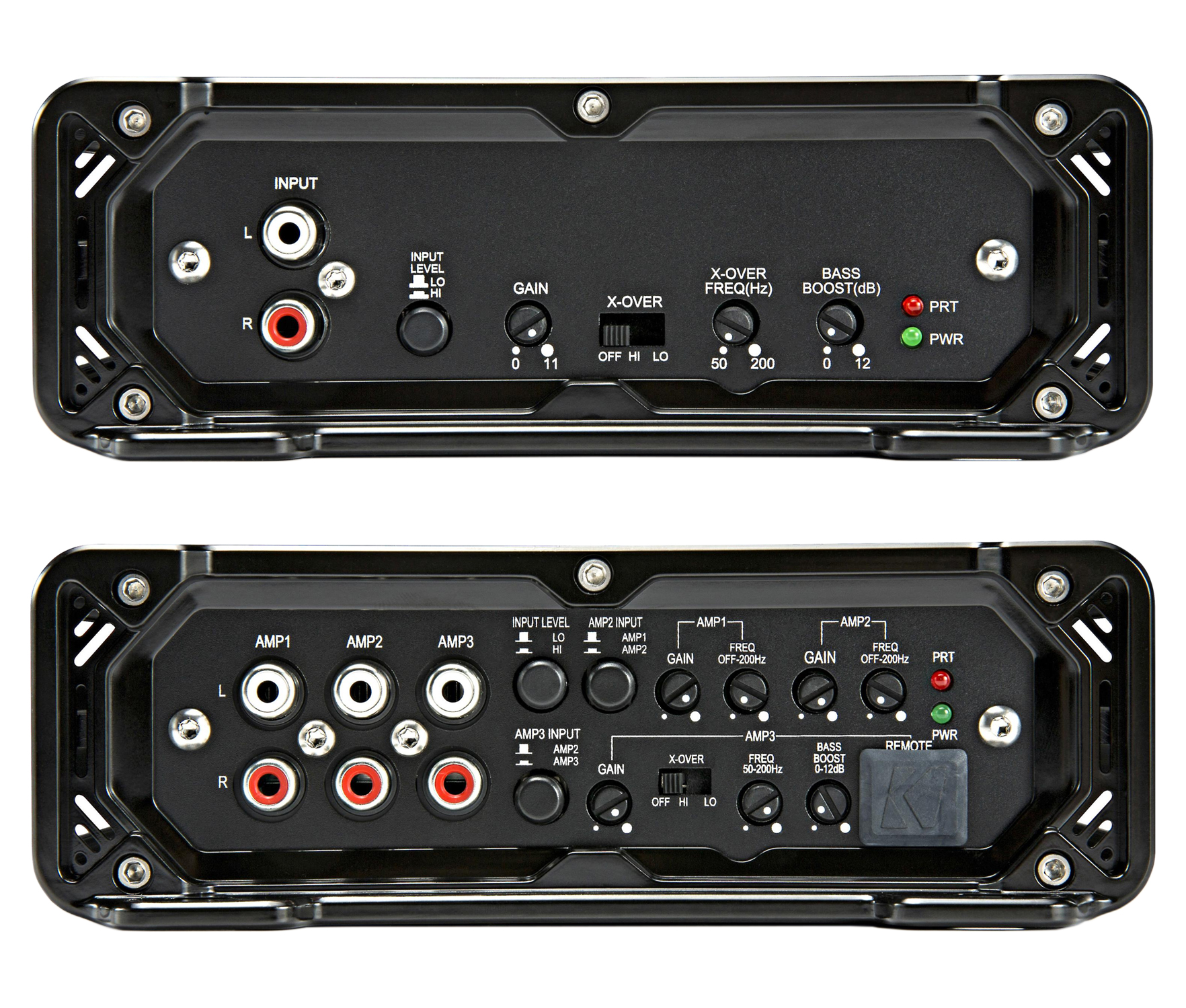 Dialing in your sound is easy with KM amps. Variable 12dB crossovers are built in, plus a 24dB subsonic filter is also included on the KMA600.1 mono amplifier, and Amp 3 of the KMA450.6. The amplifiers are also equipped with the KickEQ™ variable 12dB bass boost!