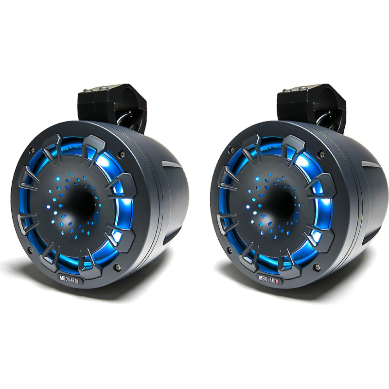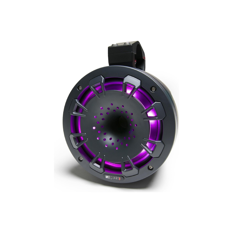 LED lights on a tower or roll bar are both cool and practical. These speakers give you practically limitless color choices, and you can enjoy steady light, a strobe effect, or programmed "light shows" – the choice is yours. You'll need MB Quart's N1-RC remote (sold separately) to control the lighting system and to sync multiple LED speakers.Compression horn designs dramatically improve speaker efficiency. And this is the fun kind of efficiency – it means it takes less amp power to produce more usable volume throughout the frequency spectrum. In other words, you can crank these speakers up and hear it all – highs, lows, and mids.