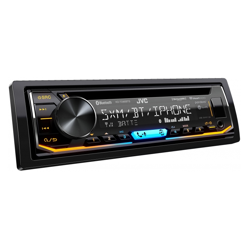 Single DIN In-Dash Bluetooth CD Receiver featuring USB, SiriusXM, Pandora, iHeartRadio, Spotify, 13-Band EQ, JVC Remote App Compatibility