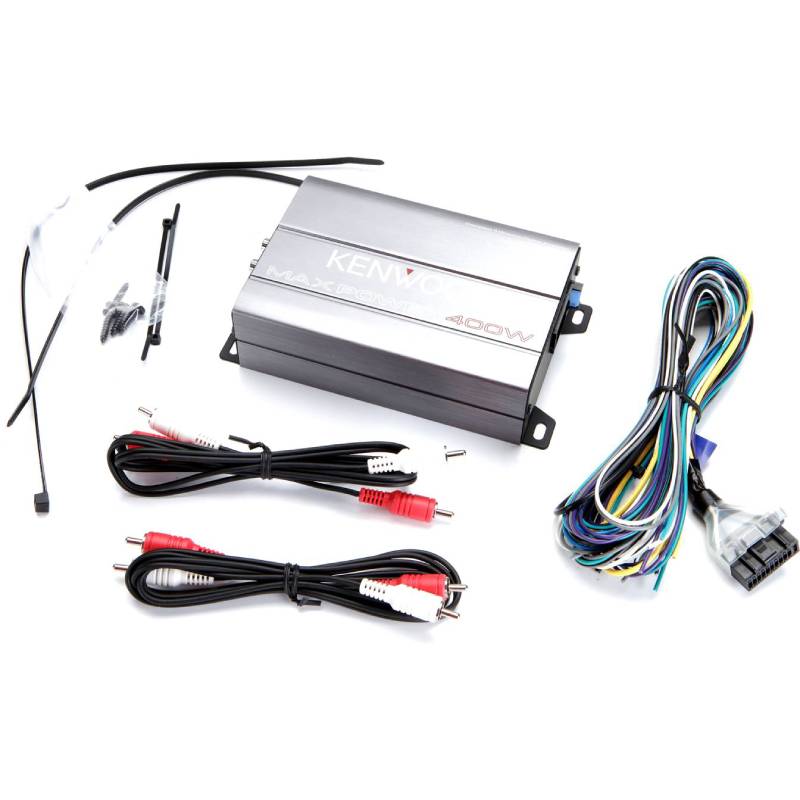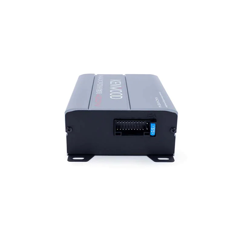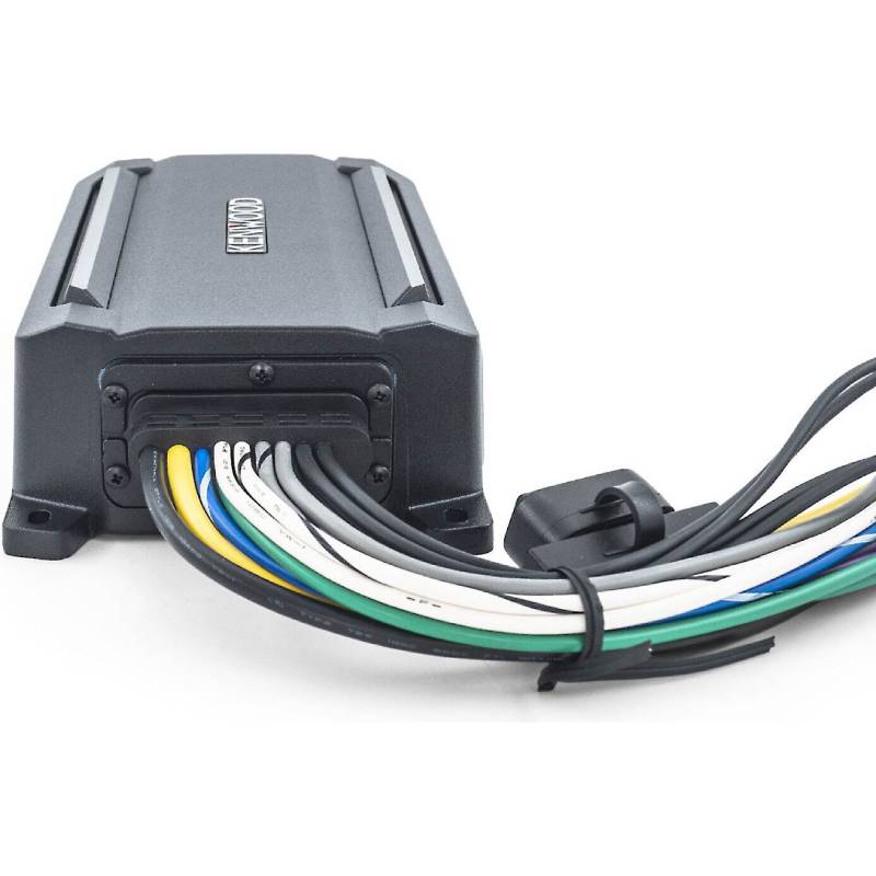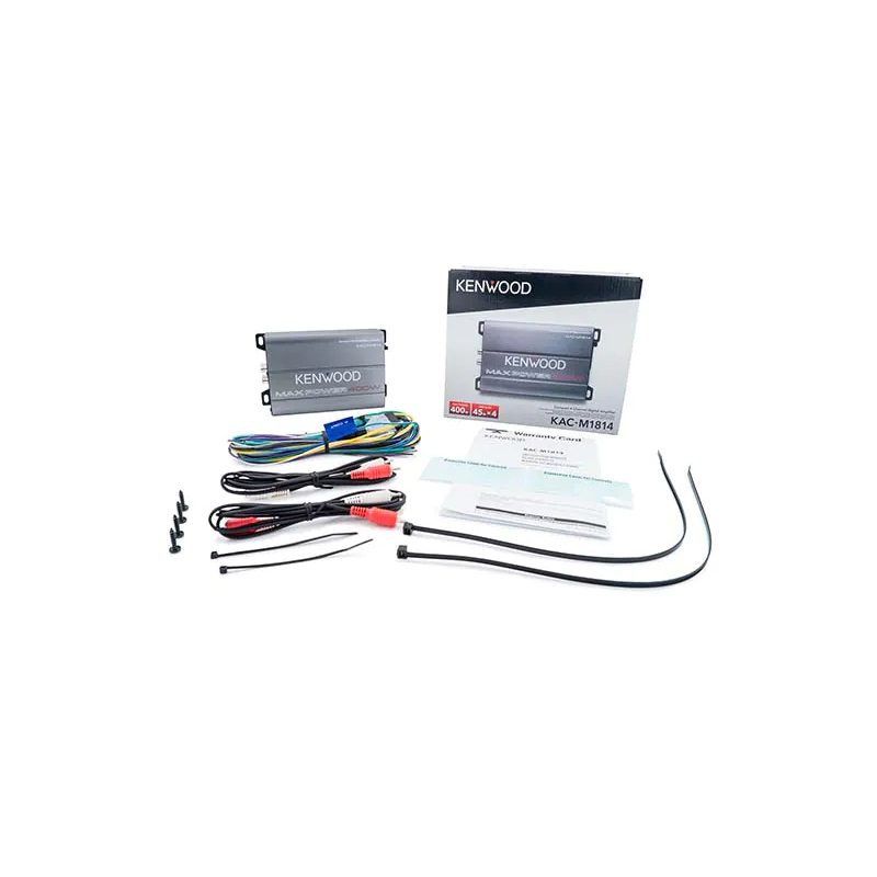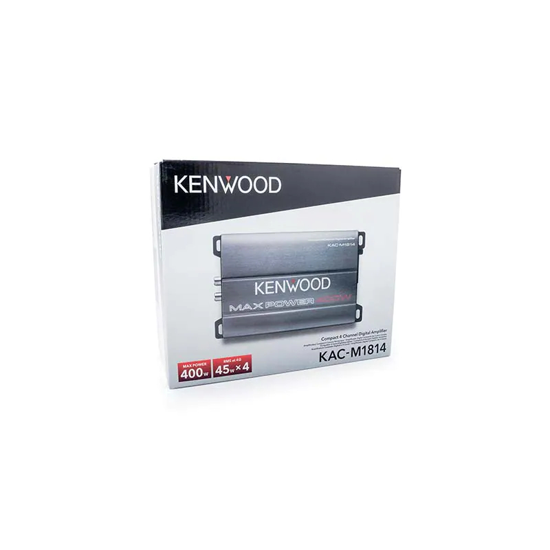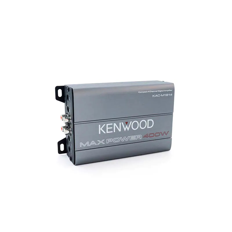Kenwood's super-compact KAC-M1814 will add new clarity and impact to the basic sound system of almost any kind of vehicle on land or water, and it'll fit in a lot of places when space is tight. This marine-rated 4-channel amp will pump up your audio system with 45 watts RMS per channel — that's more than twice the power of most car stereos or marine receivers.