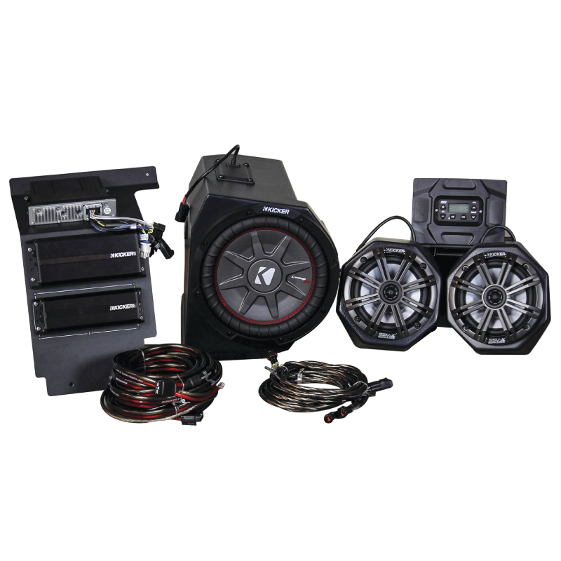 KICKER and SSV Works deliver great tunes on the trail. This complete plug-and-play, three-speaker system is custom-made for your GENERAL, right down to the wiring. To get tunes to your system, an SSV Works receiver is included, delivering AM/FM and Bluetooth connectivity to two KICKER PX-Series powersports amplifiers. These weatherproof amps give you 800 watts worth of juice for plenty of volume on the trail.