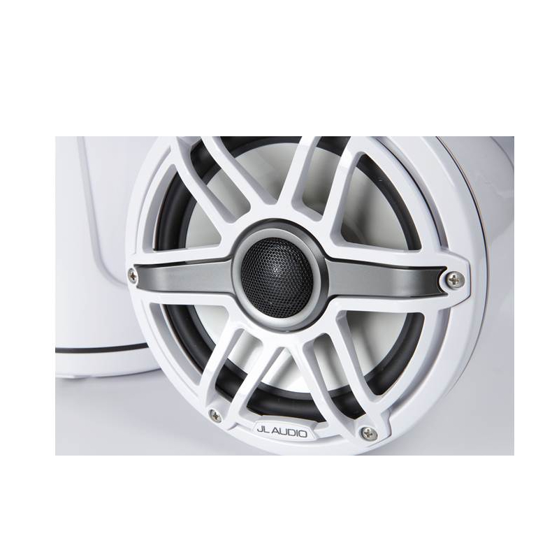 JL Audio M6-770ETXv3-Gw-S-GwGw M6 Series 7.7" 100W RMS (225W Peak Power Handling) 4 Ohms, 2-Way Marine Wakeboard Tower Speakers with Gloss White Sport Grille and Grille Insert (Pair)