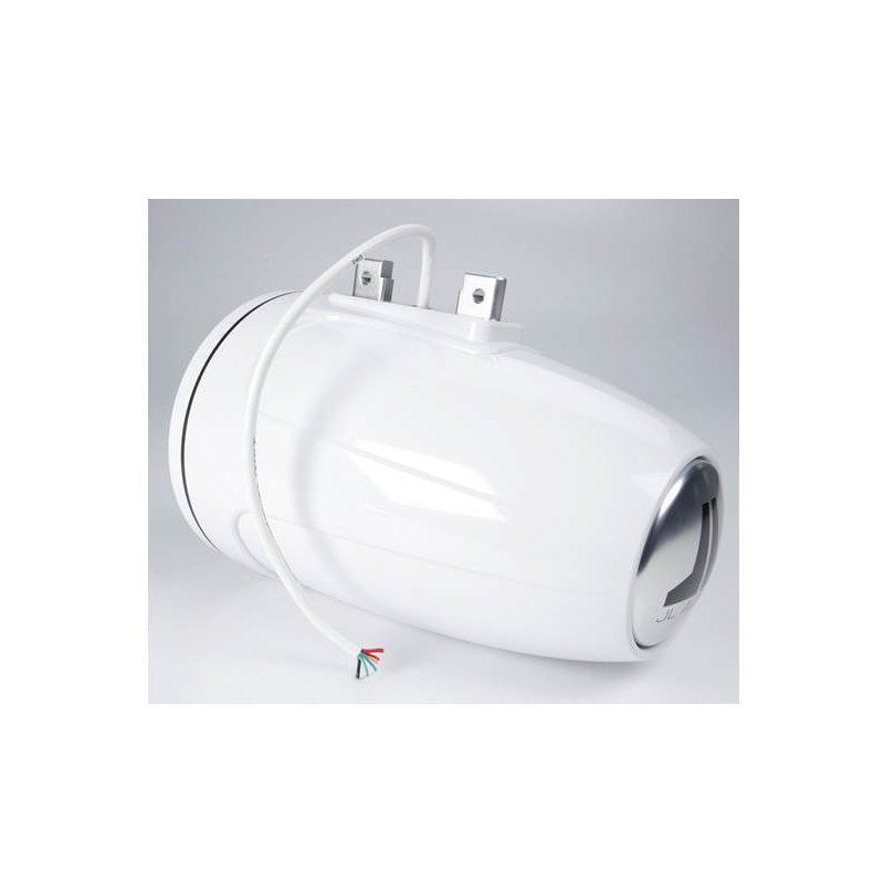Injection-molded enclosures with decorative aluminum logo caps are designed for secure mounting with JL Audio clamp systems (sold separately), keeping wires high, dry, and neat. Rugged construction ensures long-lasting durability and reliable marine audio performance.