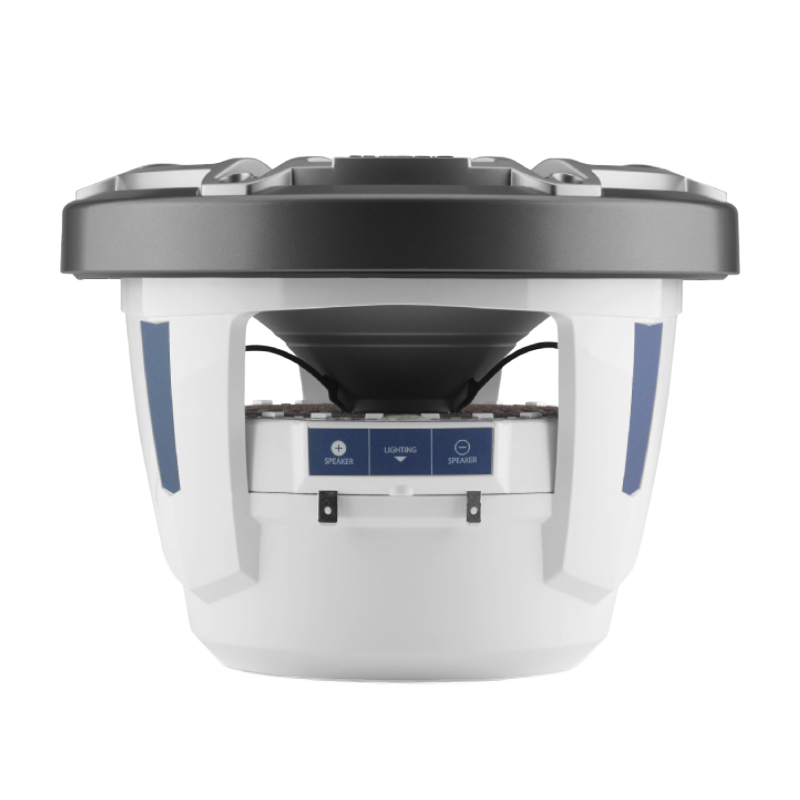 Sport models feature Transflective™ RGB LED lighting that provides smooth, multi-colored illumination with no hotspots or reflections, adding a premium glow to your boat. Built with marine-grade materials—including mica-filled polypropylene cones, synthetic rubber surrounds, polymer baskets and grilles, and stainless steel back plates—this subwoofer resists corrosion for long-lasting, reliable performance.