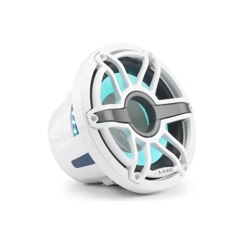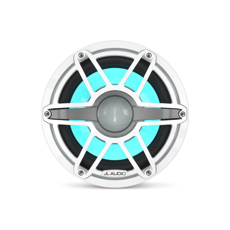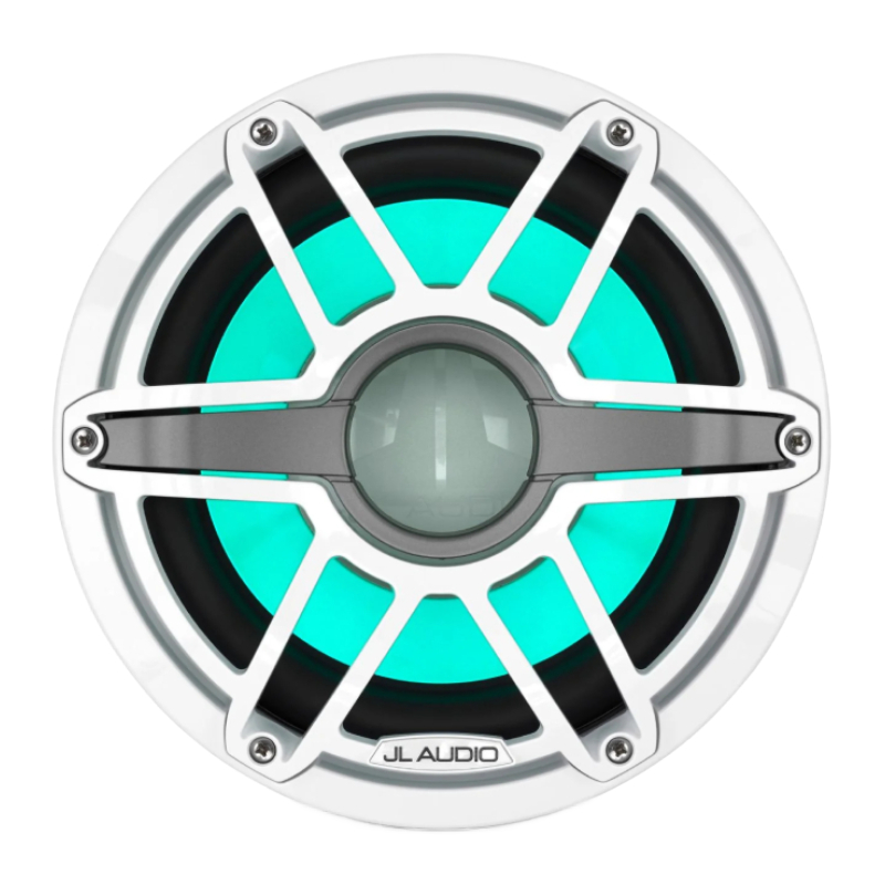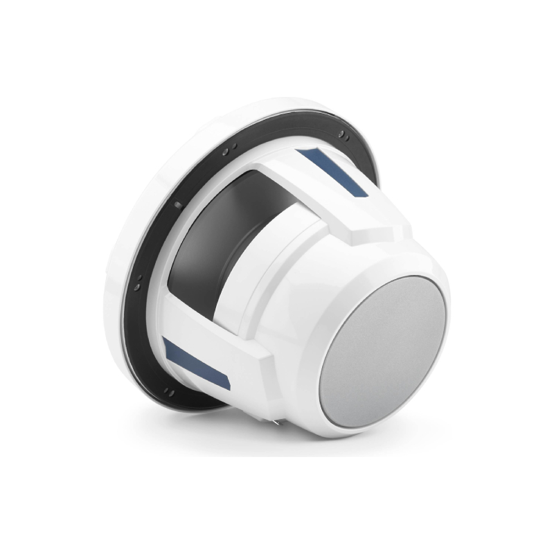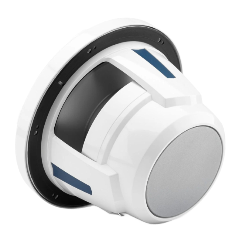 This 10-inch M6 marine subwoofer is designed for infinite-baffle use, delivering 250W of power at 4Ω. Featuring a gloss white trim ring, sport grille, and integrated Transflective™ LED lighting, it adds visual appeal while offloading low frequencies, letting main speakers play louder and sound cleaner.