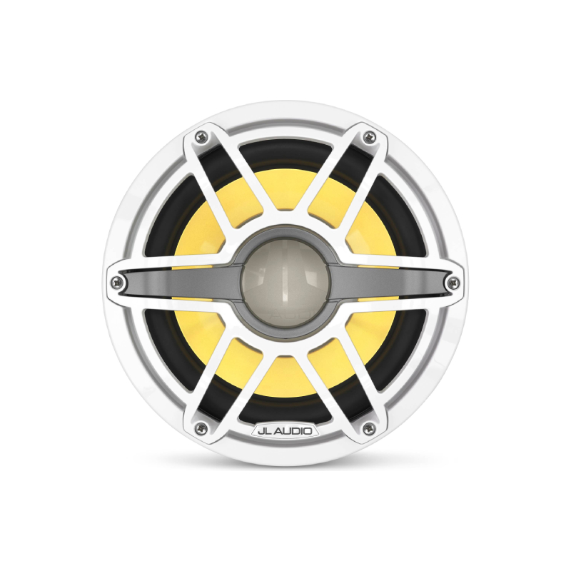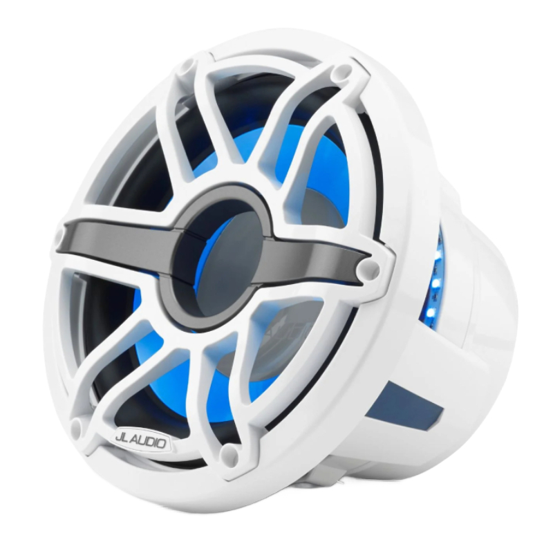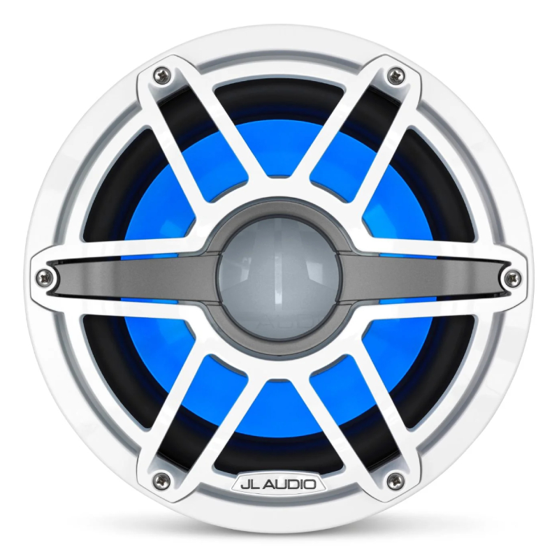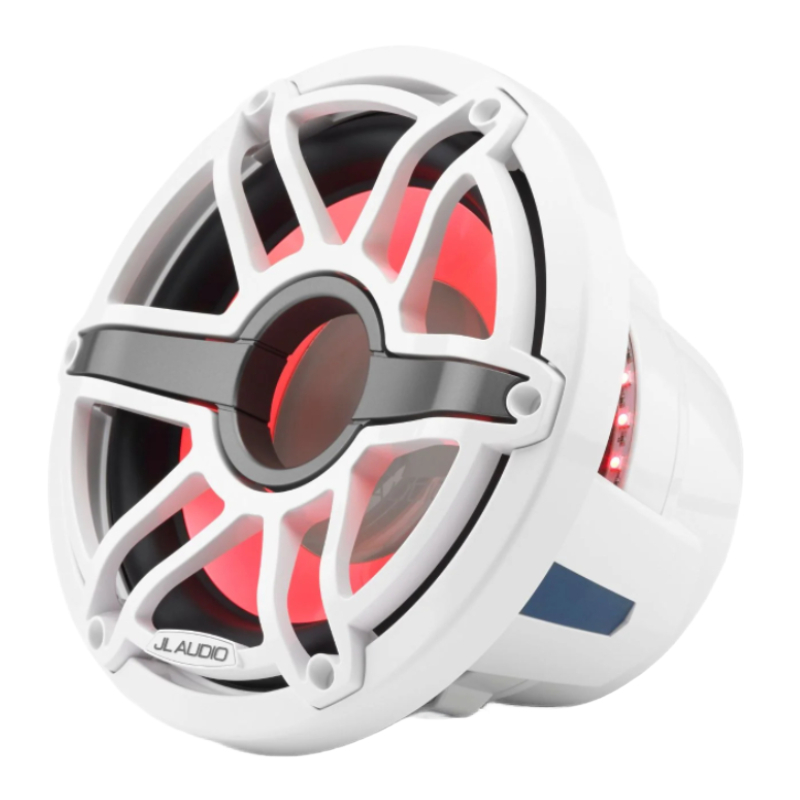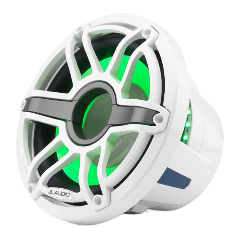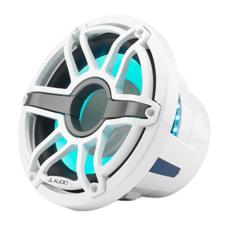 This 10-inch M6 marine subwoofer is designed for infinite-baffle use, delivering 250W of power at 4Ω. Featuring a gloss white trim ring, sport grille, and integrated Transflective™ LED lighting, it adds visual appeal while offloading low frequencies, letting main speakers play louder and sound cleaner.