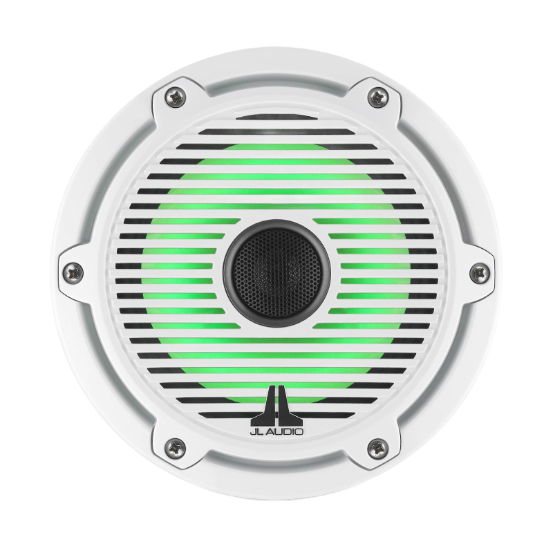 JL Audio M6-770X-S-GwGw-i M6 Series 6.5" 75W RMS (150W Peak Power Handling) 4 Ohm, 2-Way Marine Coaxial Speakers with LED lights and Gloss White Classic Grille (pair)