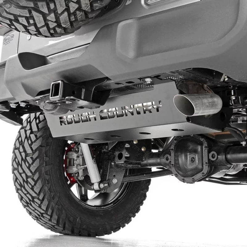 Protect your JL’s Muffler from off-road hazards with Rough Country’s Muffler Skid Plate. This durable, 3/16 plate steel skid helps to protect your muffler from rocks, debris and anything else you can throw at it!