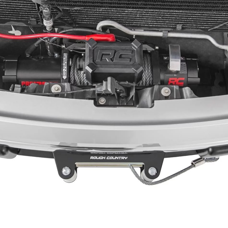 Give your truck a sleek recovery system that still turns heads with Rough Country's Hidden Winch Mount for '09-'14 Ford F150. This subtle yet innovative design capitalizes on the ample space behind the front bumper to mount your RC or other standard sized winch while keeping everything neat and tidy. A 1/4" plate steel winch mount secures easily and steadily into the frame horns without cutting or drilling. A unique Roller Fairlead Bracket mounts into the front license plate area for a flush design, leaving only the chrome fairlead and tow hook exposed. This kit is easy to install, suitable for one person to do by themselves. Unlike many winch mount solutions, the winch does not have to be installed to the mounting plate prior to installing on the vehicle, making the task that much easier. This kit also includes a solenoid relocation bracket and Grade 8 Hardware.
