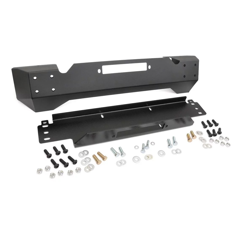 Get the look you want and the protection you need with Rough Country's TJ/YJ Stubby Bumper with recessed winch plate. This high-tensile steel bumper gives Jeep TJs and YJs a menacing look while providing more tire clearance and better approach angles for flexing. With it's durable carbon black coating, this true stubby bumper will turn heads on and off the highway. A recessed winch mount plate helps protect your winch and line as it rests partially hidden behind the bumper, and allows you to mount the winch fairlead on the outside for ease of use. Upgrade your TJ/YJ Stubby Bumper with some eye-catching upgrades such as an optional light bar with mounting brackets, or heavy-duty Stinger for a high-profile look. A mountable set of D-rings is also available and can be used with either accessory. Installation of the bumper and accessories is quick and easy, featuring a bolt-on install process.