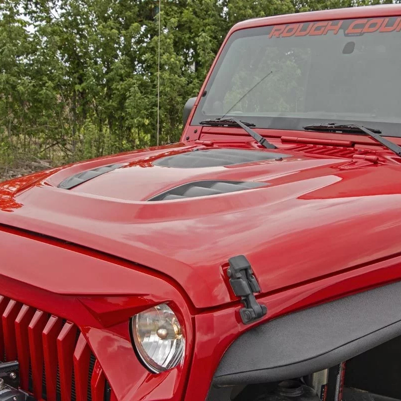 This easy-to-install hood upgrade uses a simple, bolt-on installation process that can be performed in no time flat! Rough Country’s Vented JK Hood features integrated recesses that allow you to retain any factory or aftermarket hood latch for ease of use as well as re-location holes that allow you to retain the factory washer nozzles. This kit also includes a solution for 07-13 models to upgrade from a single nozzle to a dual nozzle setup. Give your JK improved airflow and aggressive good looks today!