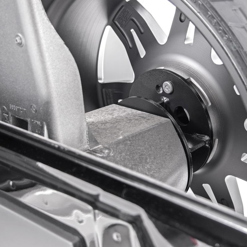 Don’t hit the road without a full-size spare! Rough Country’s Rear Tire Carrier Spacer gives your Jeep Wrangler the ability to carry a larger aftermarket tire and wheel on the rear of your vehicle. This easy-to-install design fits any tire/wheel combo up to 33-inches, allowing you to always have a full size spare at your disposal.