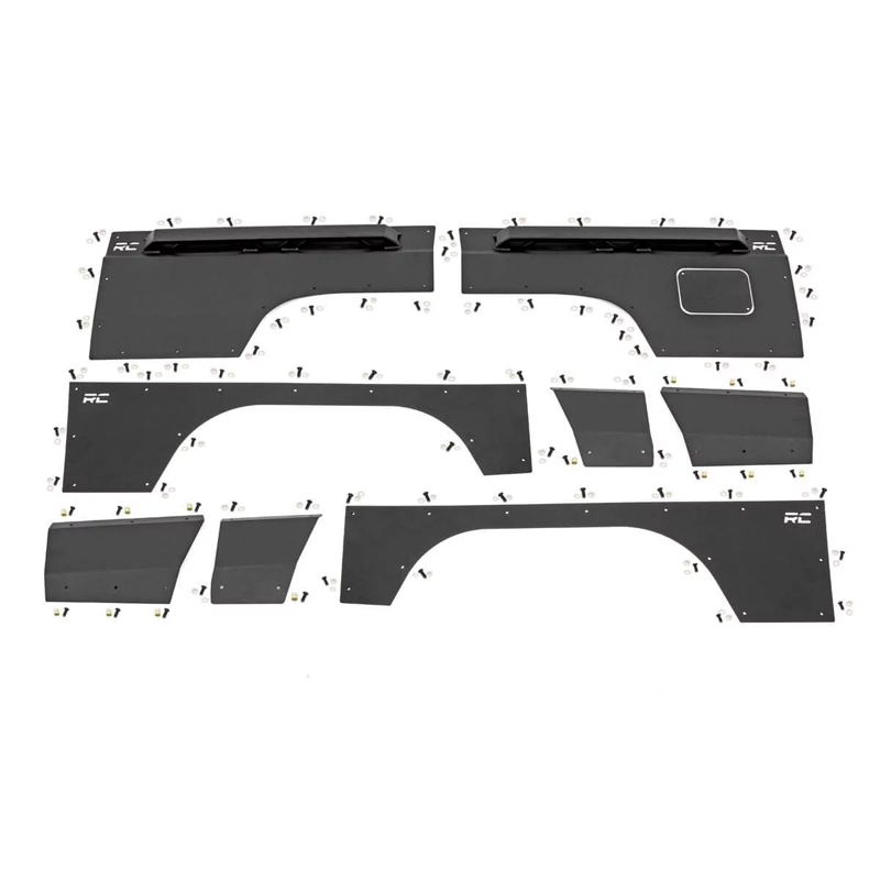 Rough Country’s durable armor plating is made of 11ga steel for uncompromised strength. The rear upper quarter panel features a unique box style rub rail that blends in seamlessly with the square-body XJ design. Each panel is laser cut for a precise fit, perfectly contoured to fit each curve and body angle. Rough Country’s Armor is engineered for a long lifespan of good looks; designed to resist the elements with a flat black powdercoat finish and special stainless black oxide hardware.