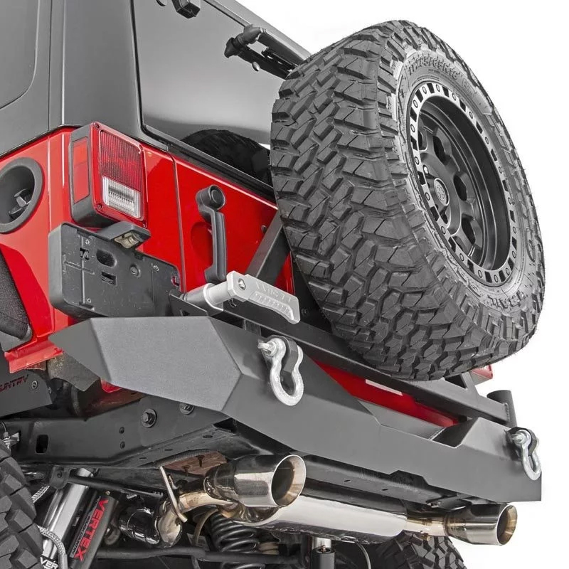 Beef up your JK’s rear end with Rough Country’s Heavy-Duty JK Rear Bumper with Tire Carrier! This stylish, durable steel bumper offers unbridled protection for the rear of your JK while giving you increased tire clearance for off-road articulation. With bold angles and contoured curves, this rear bumper is a true head-turner that’s sure to get attention.