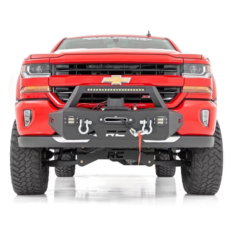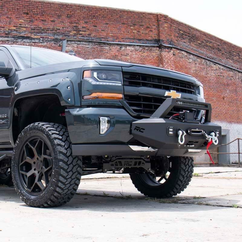 Add a professional recovery and lighting solution to your vehicle with Rough Country’s EXO Winch Mount System for Chevy 1500 Trucks. This innovative recovery solution bolts-on right over the factory bumper, giving your truck a wealth of new abilities and aggressive good looks.