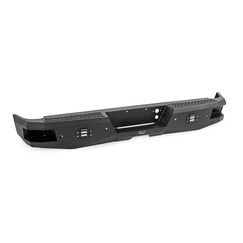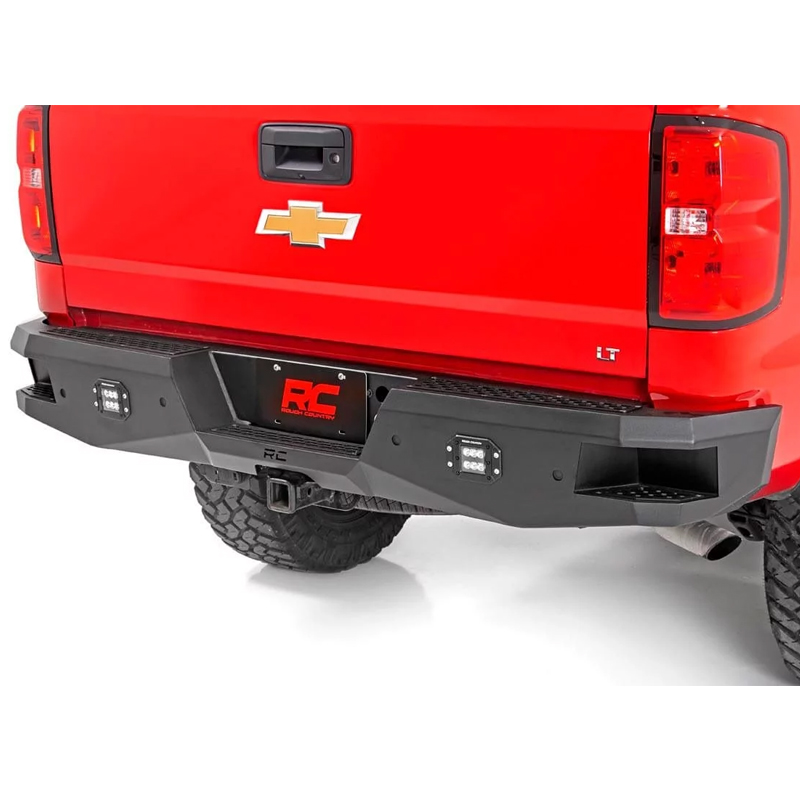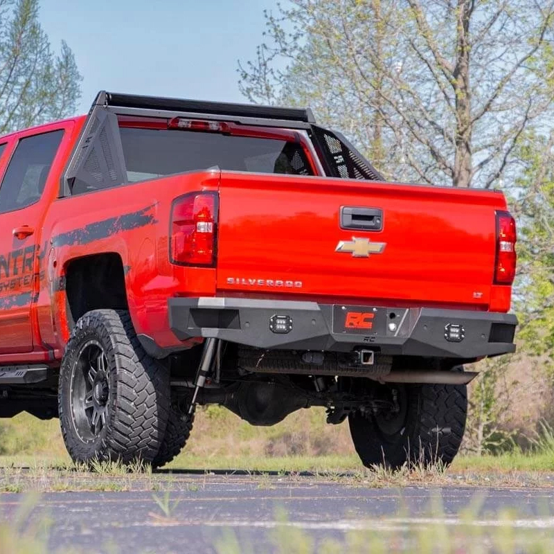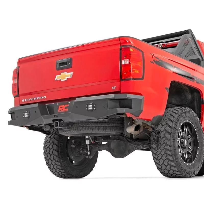 Give the rear of your Chevrolet Silverado an aggressive, new appearance with Rough Country’s Rear LED Bumper. This easy-to-install upgrade gives your truck an improved look and better functionality. Each bumper features two Rough Country Black-Series 2in LED Flush Mount Cubes for rear illumination, and two integrated steps for easy access to the bed. Rough Country’s Rear LED Bumper is made of a durable, all-steel construction that’s ready to handle whatever you dish out. Each bumper also includes sensor relocators to allow you to retain the vehicle’s anti-collision system. Unlike some aftermarket bumpers for this model, Rough Country’s LED Rear Bumper allows you to retain the factory receiver hitch for towing. Complete the look with Rough Country’s Front LED Bumper for a total transformation of your truck. Includes a 3-year Warranty!